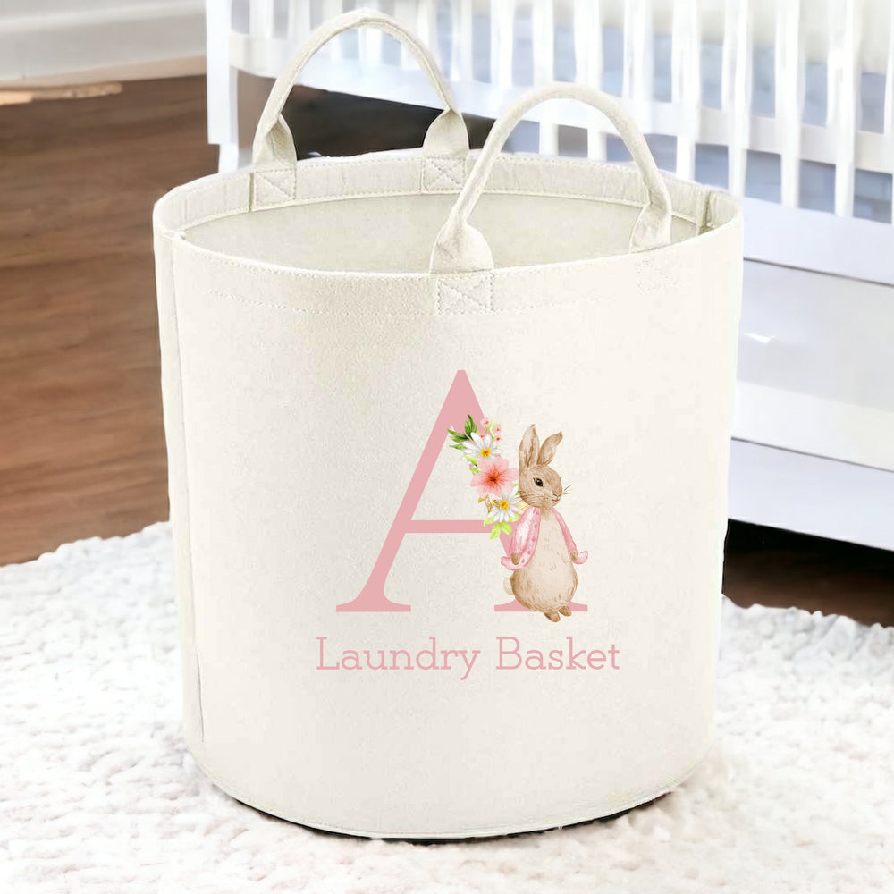 Organize your child's toys and laundry in style with our Personalised Dusky Pink Rabbit Toy Tub. Featuring a soft pink hue and customizable with your child's name, this tub adds a personal touch to any room. Keep their space tidy and clutter-free while adding a playful touch.
