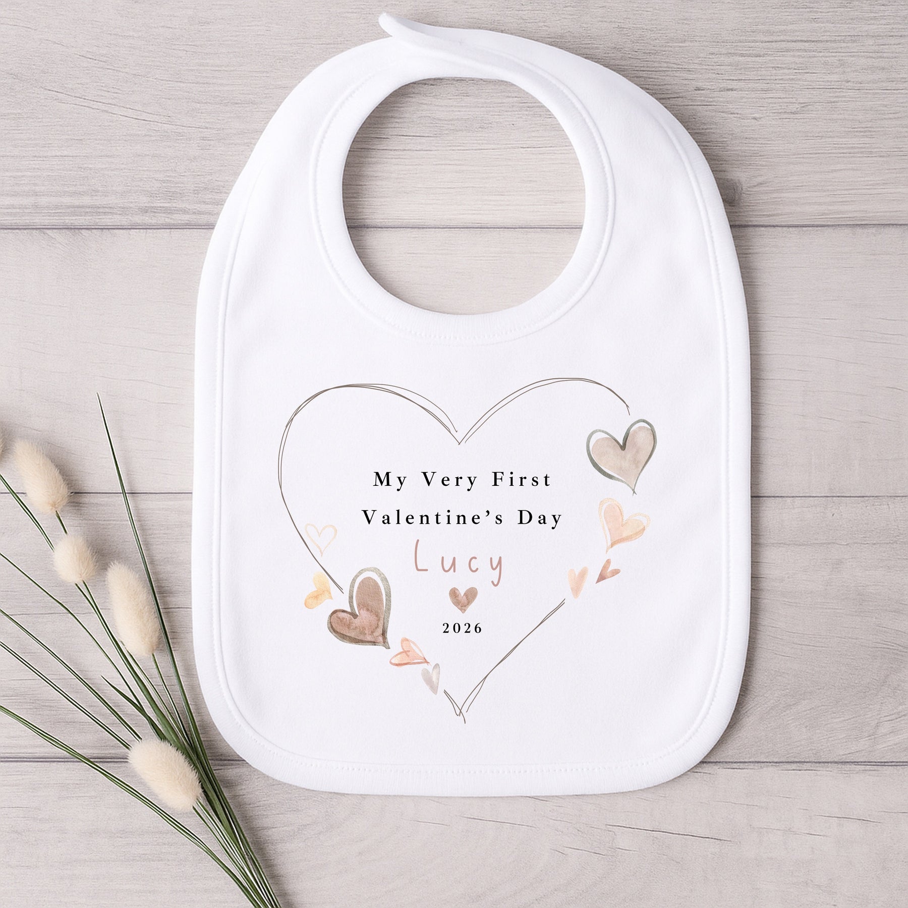 Celebrate your baby’s very first Valentine’s Day with this soft and sentimental personalised baby outfit, featuring a delicate hand-drawn heart design in neutral tones. Designed to mark this special milestone in 2026, this timeless outfit is personalised with your baby’s name and year, creating a beautiful keepsake to treasure for years to come. Available as a baby vest, babygrow (sleepsuit), or bib, it’s perfect for first Valentine photos and meaningful gifting.