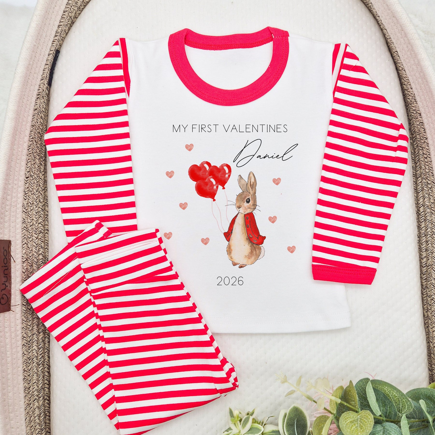 Personalised Valentines Red Rabbit Red Striped Pyjamas