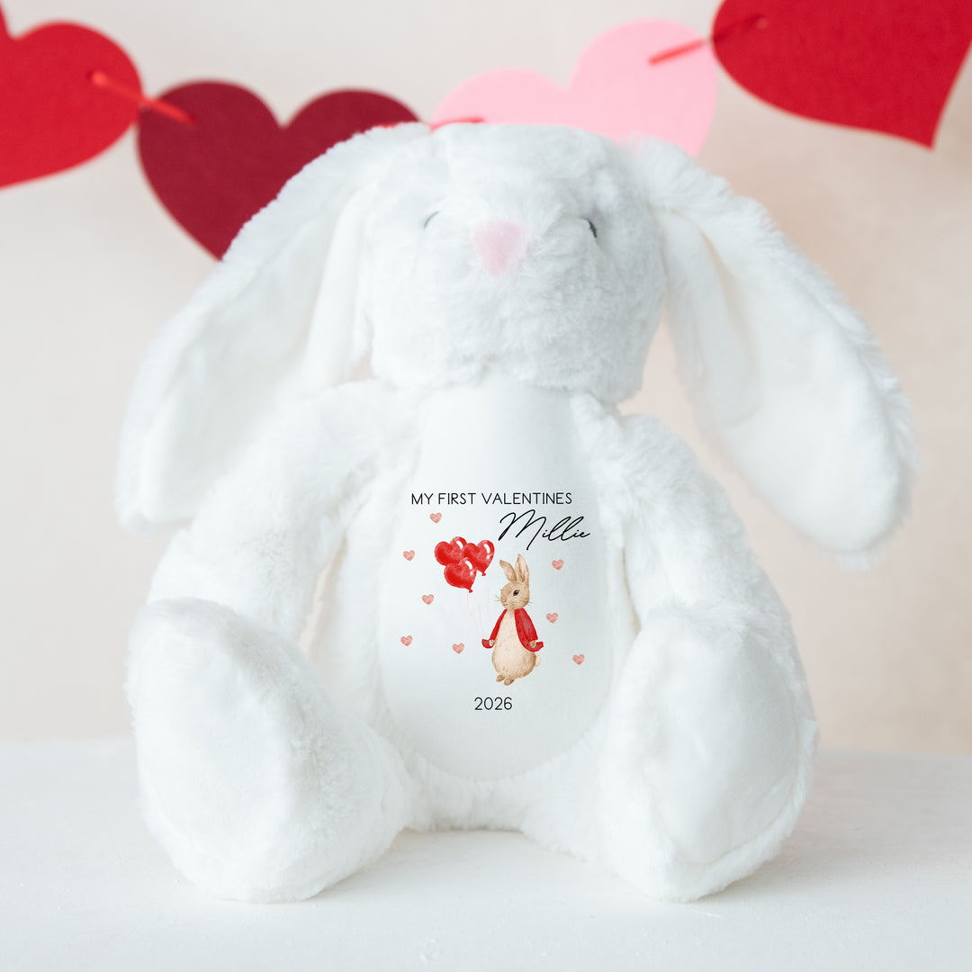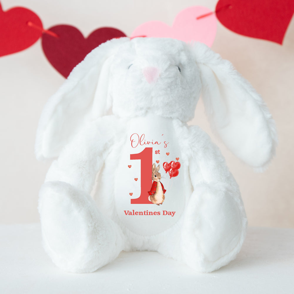 Personalised My 1st Valentines Red Rabbit White/Grey Bunny