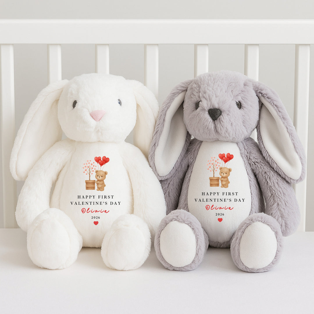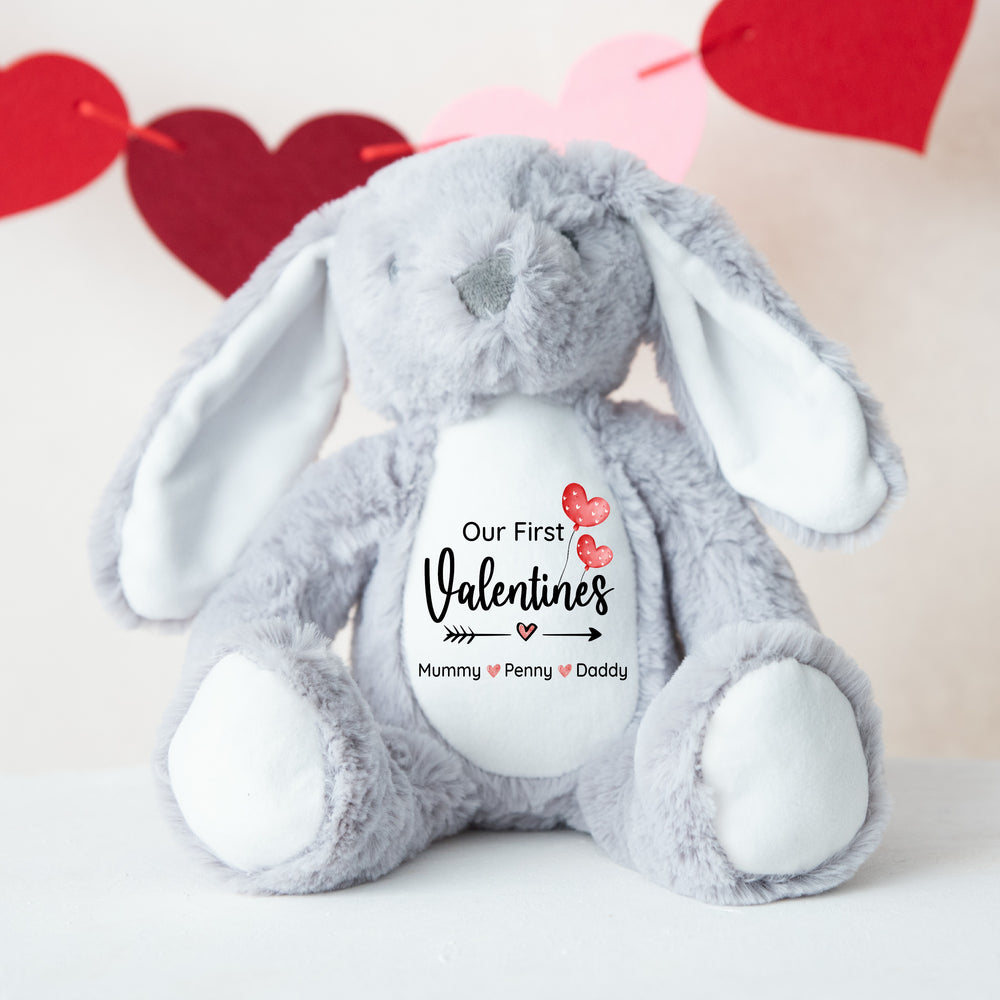 Personalised Our First Valentines Rabbit White/Grey Bunny
