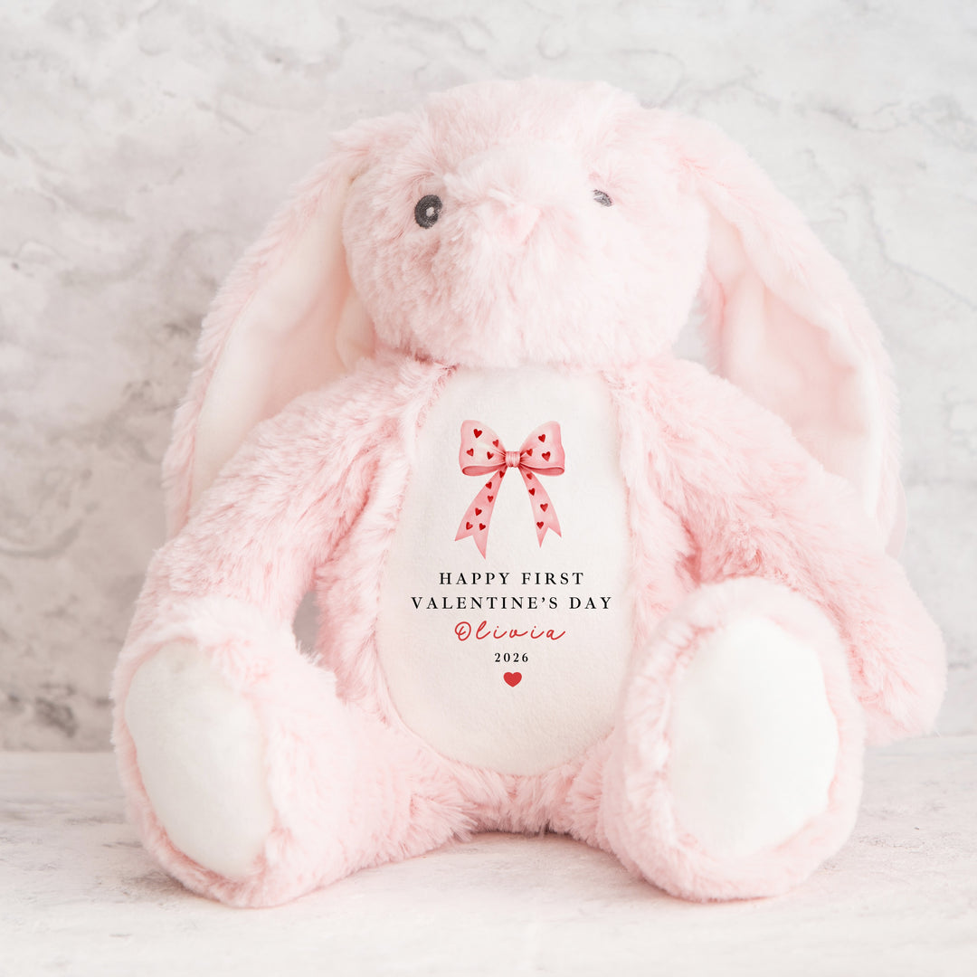 Personalised Pink Bow Happy First Valentine's Day Soft Toy