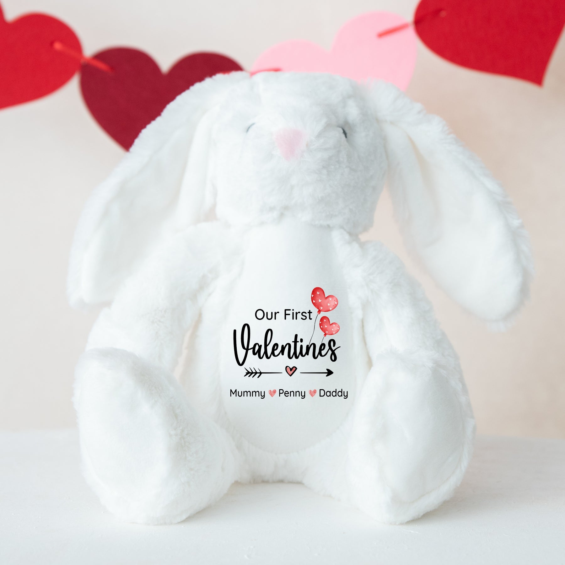 Personalised Our First Valentines Rabbit White/Grey Bunny