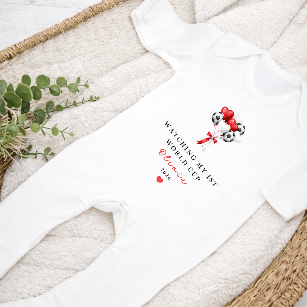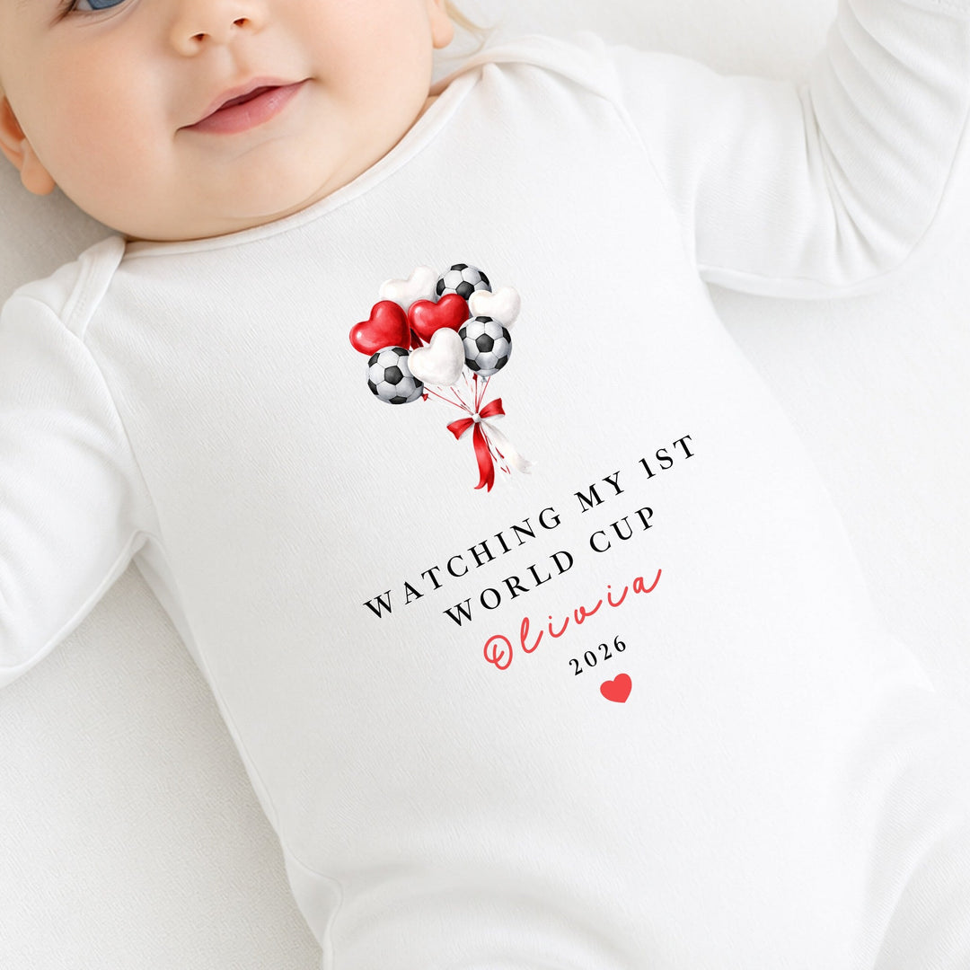 Personalised Watching My First World Cup Balloons Baby Grow or Vest