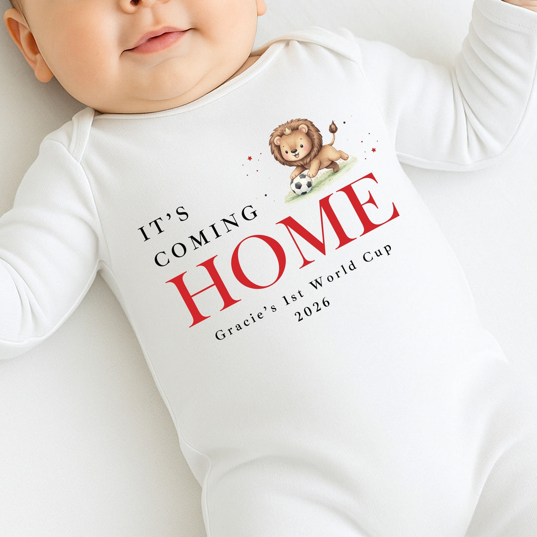 Personalised Lion It's Coming Home World Cup Baby Grow or Vest