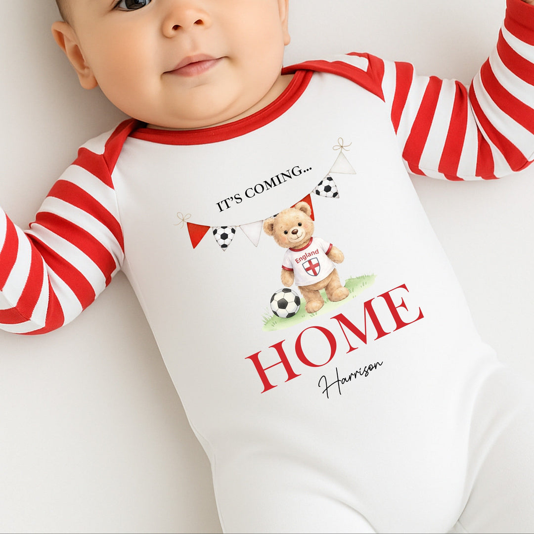Personalised Teddy Bear It's Coming Home World Cup Baby Grow or Vest
