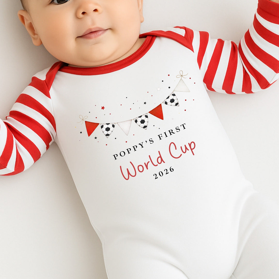 Personalised Football Banner My First World Cup Baby Grow or Vest