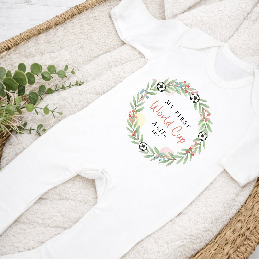 Personalised Wreath My First World Cup Baby Grow or Vest