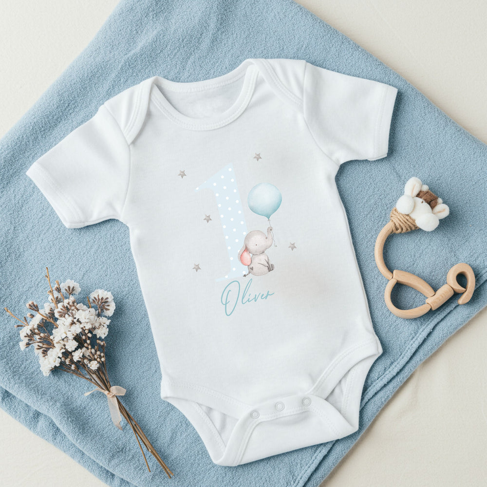 Celebrate in style with our Personalised Blue Elephant Birthday Vest! Let your little one stand out in this adorable vest that can be customized with their name. Perfect for cake smash photos or family celebrations. (Don't be an elephant and forget to add this to your cart!)