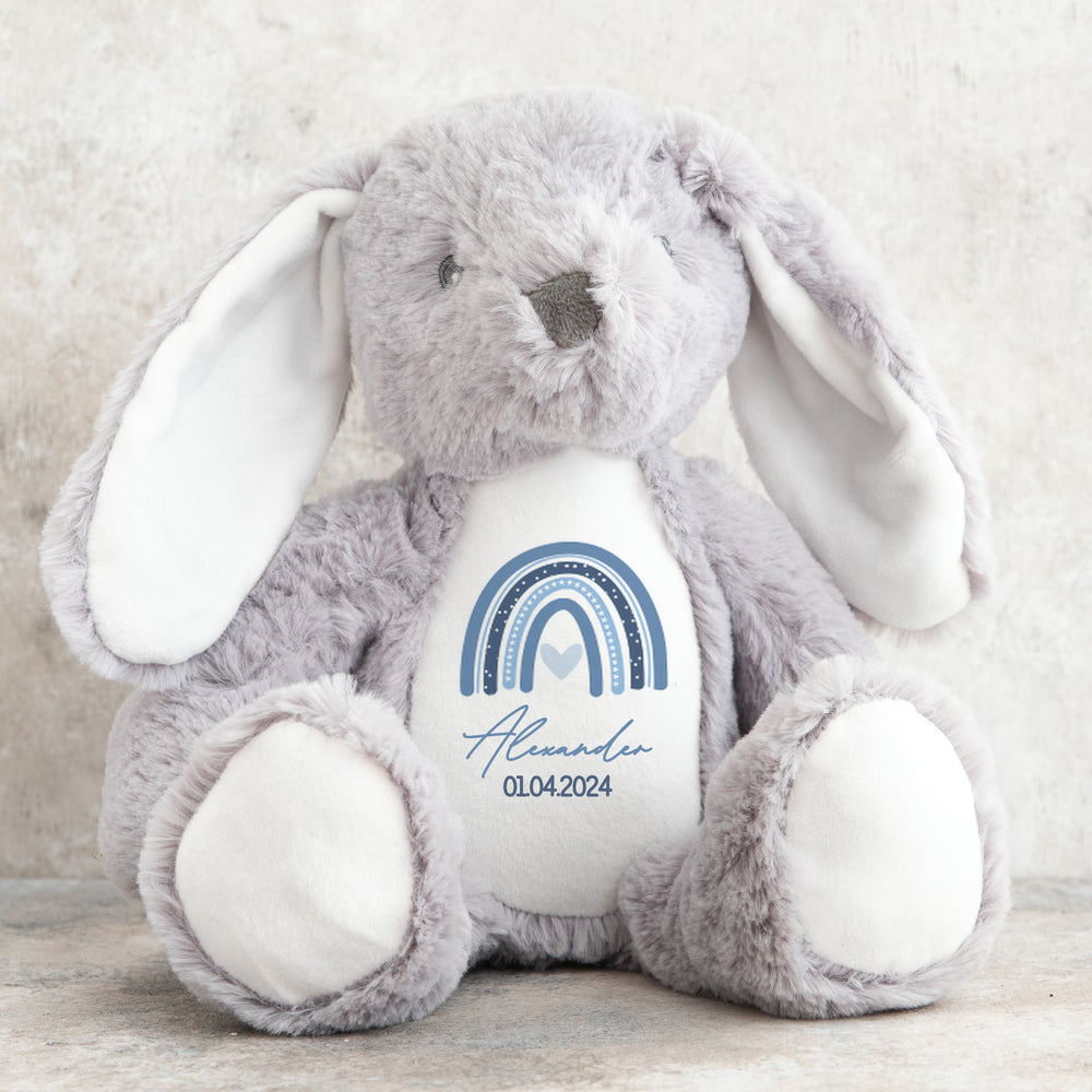Introducing our Personalised Blue Rainbow Birth Announcement Teddy! Celebrate the arrival of your little one with this adorable teddy bear. Personalize it with their name and birth date for a special touch. A perfect gift for new parents and a sweet reminder of your baby's birth.