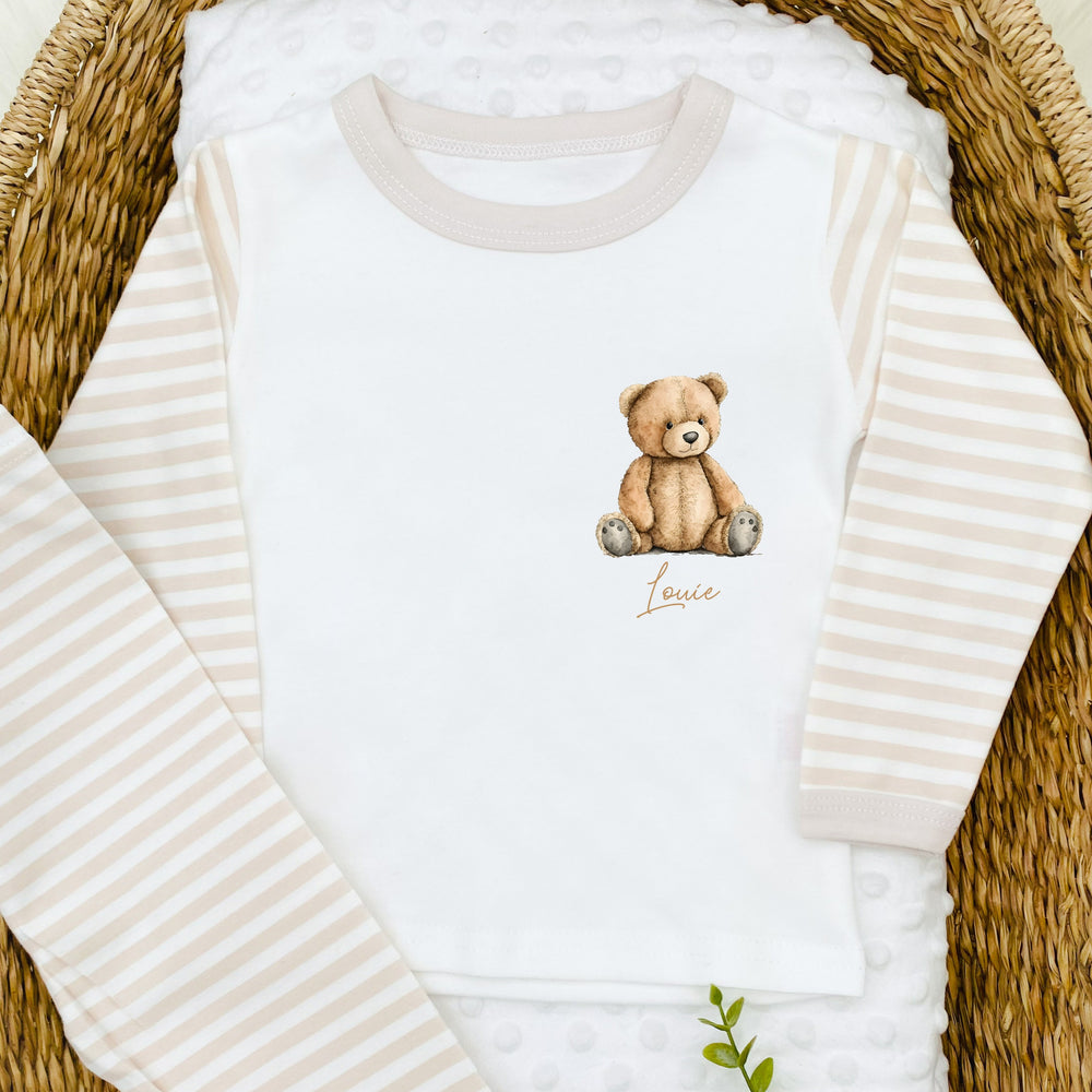 Enhance your child's bedtime routine with our Personalised Brown Teddy Bear Pyjamas. These adorable and soft pyjamas feature a cute brown teddy bear design and can be personalised with your child's name. Made from high-quality materials, these pyjamas will provide comfort and warmth for a peaceful night's sleep. Give your child a special and personalised touch to their bedtime with our pyjamas.