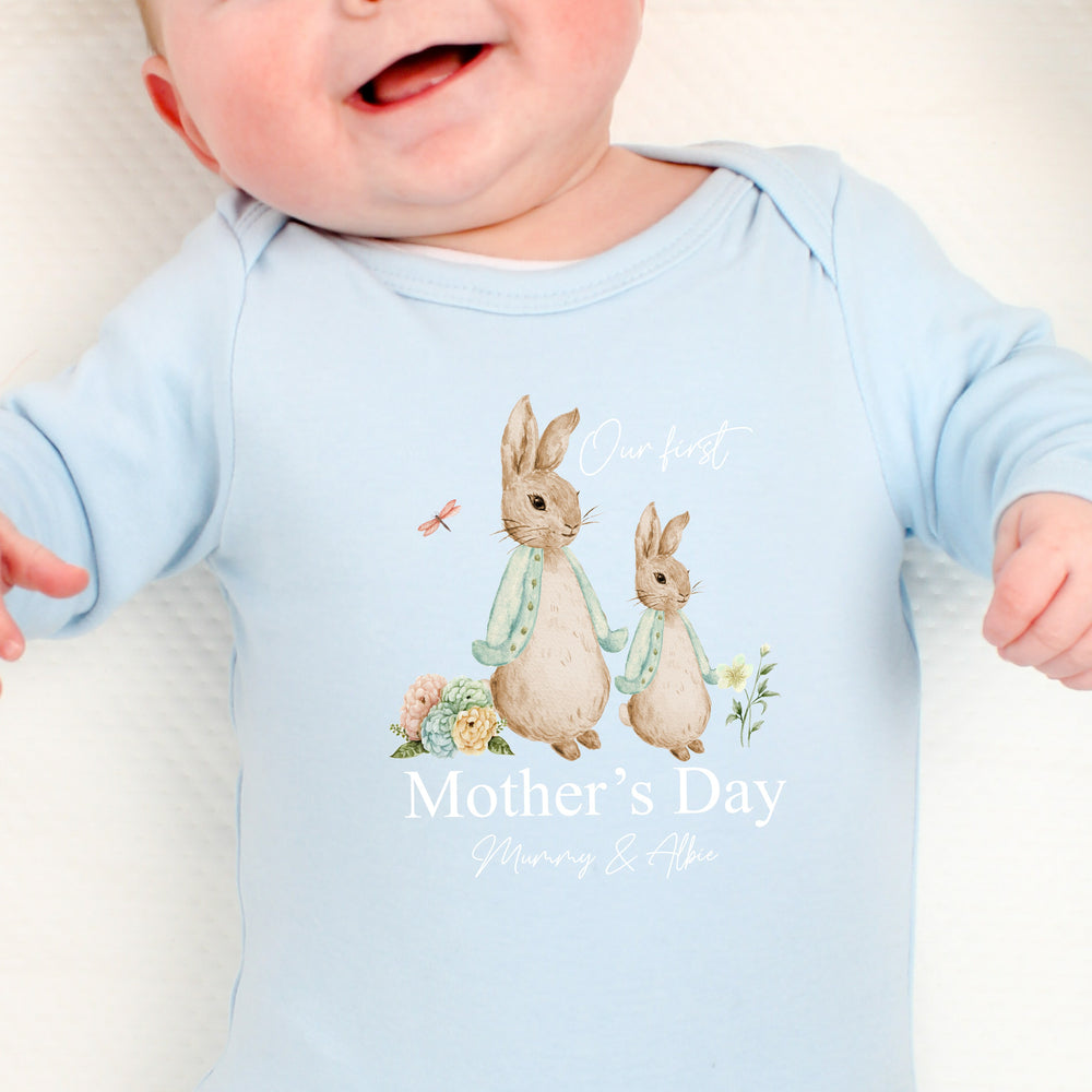 Personalised Happy Mother's Day Bunny Blue Babygrow/Vest