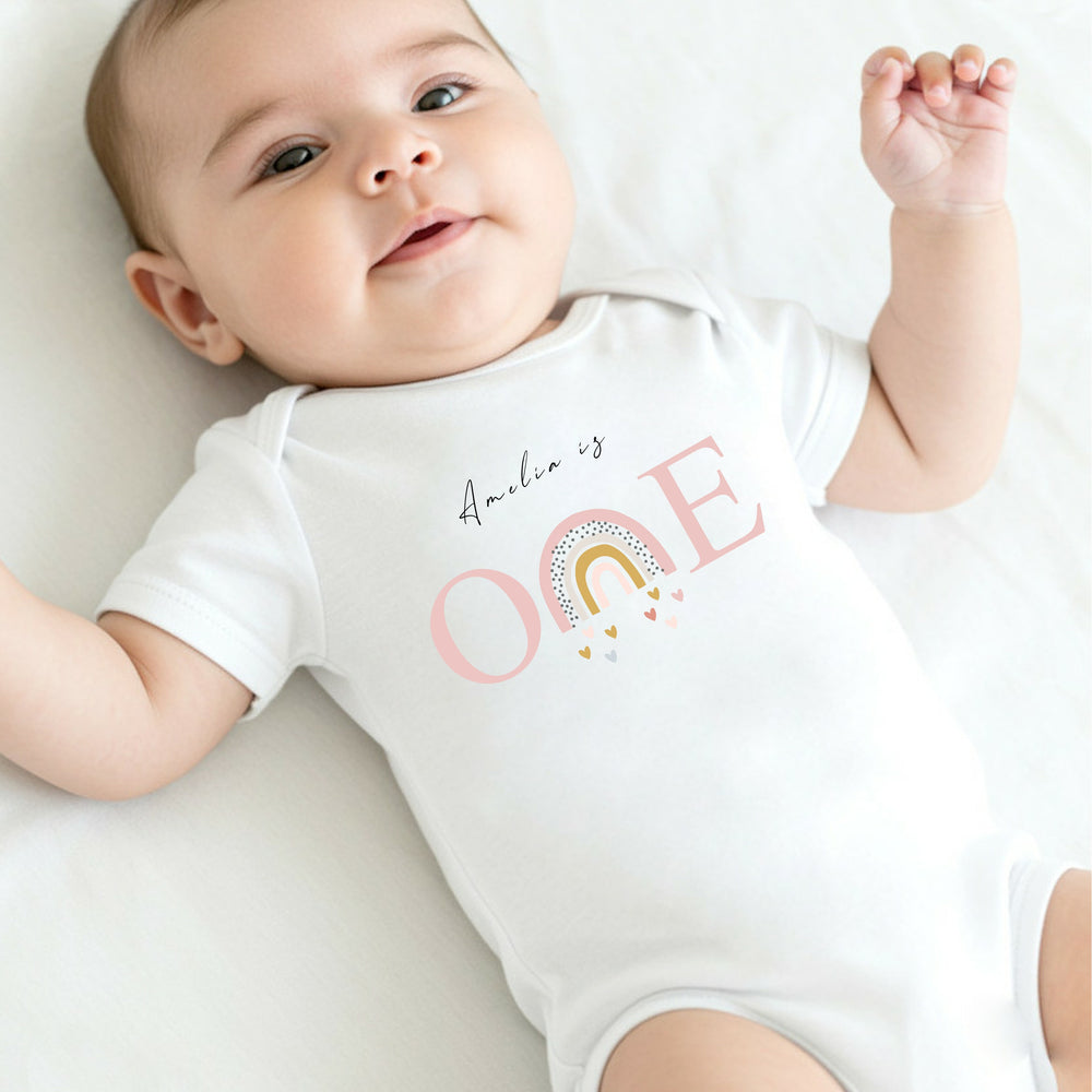 Make your little one's first birthday extra special with our Personalised Blue Rainbow First Birthday Vest! This adorable vest features a fun and colorful rainbow design, perfect for a little one's celebration. Plus, you can add their name to make it truly unique. Now that's a birthday outfit that can't be beat!
