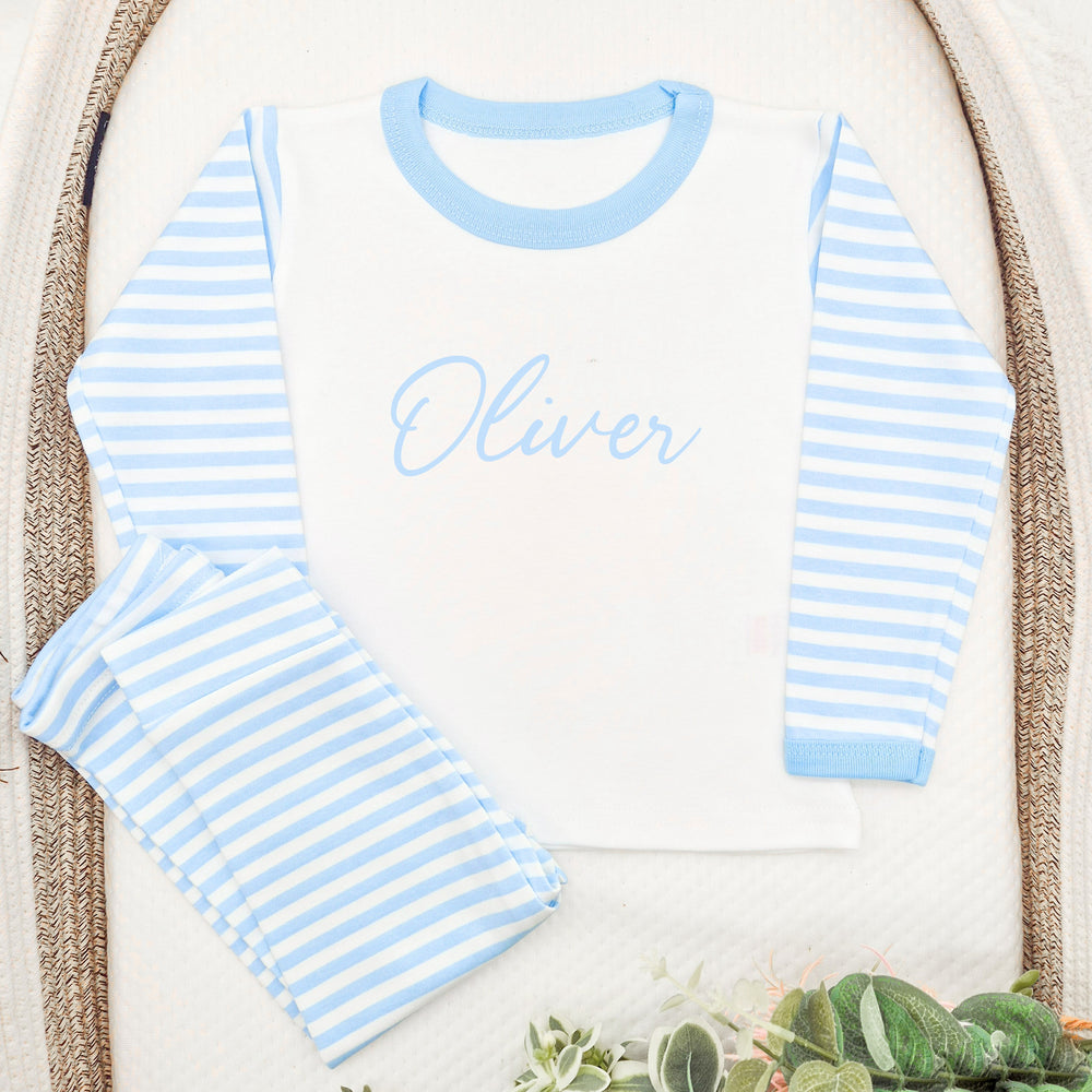 Get cozy and personal with our Personalised Script Name Pyjamas. Choose from 4 different color options and customize with your name in our beautiful script font. Perfect for a comfortable and stylish night's sleep.